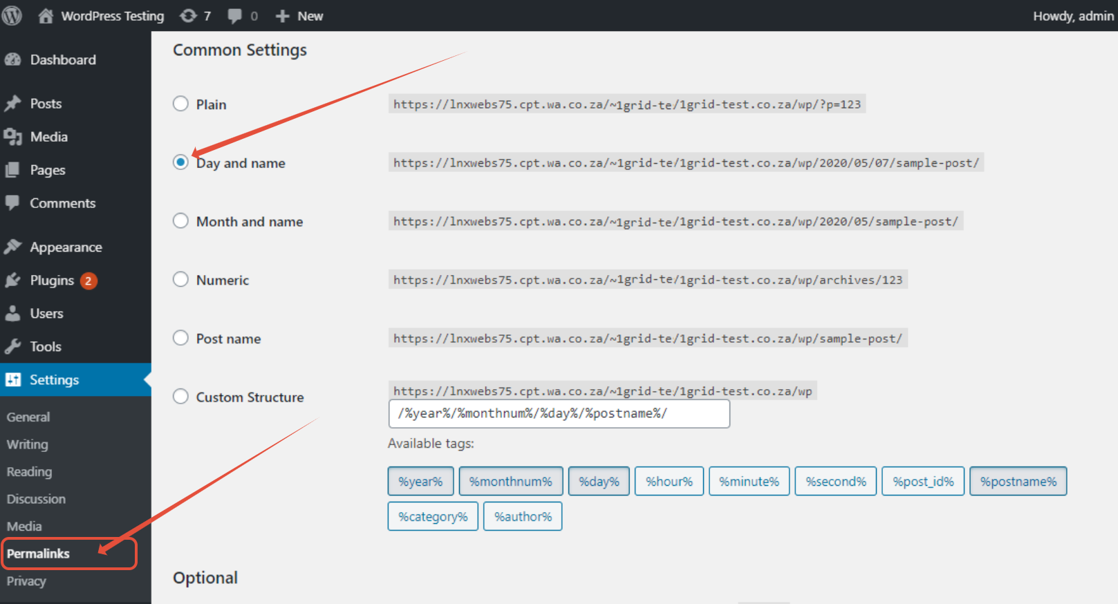 Change your settings away from the standard setting, for example to Day and name, then save changes.