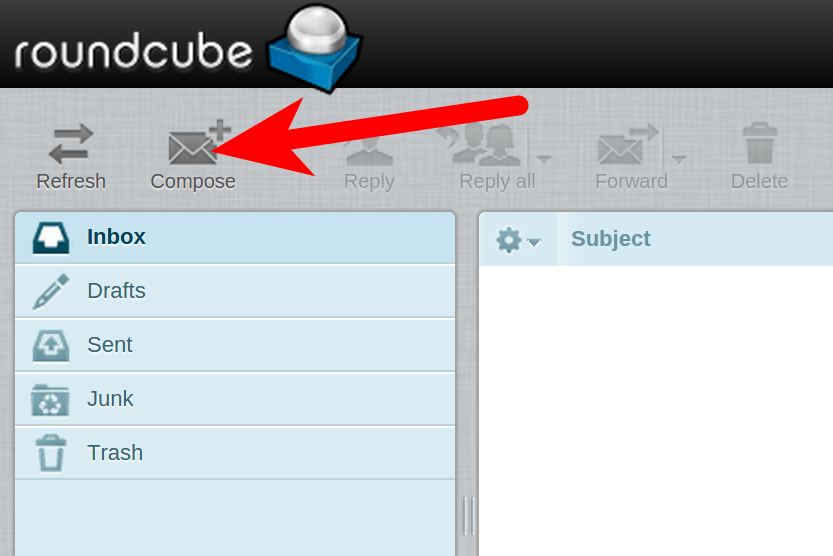 You will then be on the email composition page in Roundcube. Fill in the To, and Subject fields, then type your email message in the body.