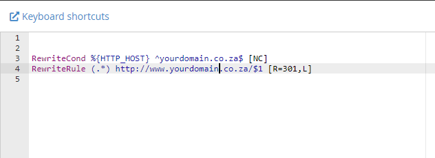RewriteCond %{HTTP_HOST} ^yourdomain.co.za$ [NC]