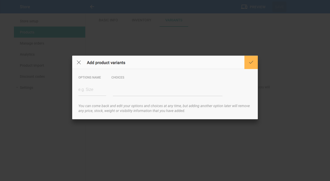 This article provides you with steps to add variants of your products to your Website Builder Store.