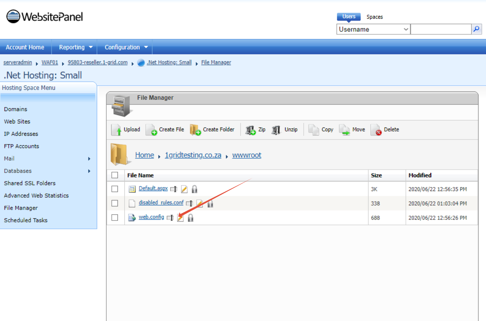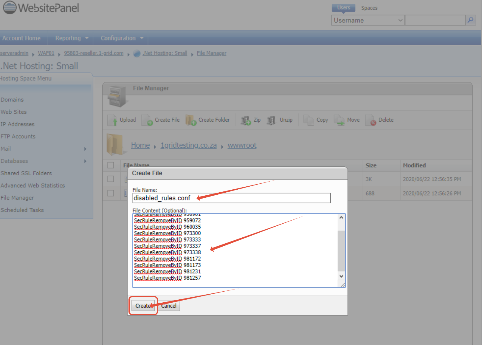 Step 1 - Go into the wwwroot of the website and create a file called disabled_rules.conf
